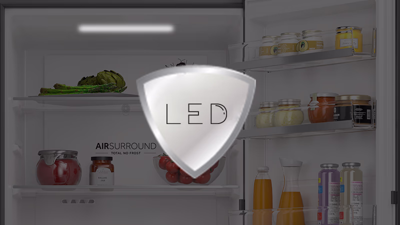 L'illuminazione a LED posizionata in alto consente maggiore visibilità e l'accesso agli alimenti conservati all'interno più comodo, senza consumi aggiuntivi.