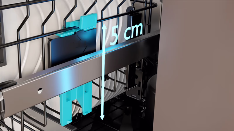 Una soluzione che ottimizza lo spazio della tua lavastoviglie regolando facilmente l'altezza del cestello superiore in base alle tue esigenze di carico.