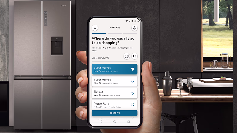 Anticipa il tuo bisogno di freschezza! Grazie all'app hOn, Haier offre la funzione Proactive Temperature: geolocalizzando la tua posizione, selezionando i tuoi supermercati preferiti e le tue abitudini di spesa, il tuo frigorifero diminuirà automaticamente la temperatura e sarà pronto quando torni a casa; una volta sistemata la spesa, l'elettrodomestico ripristinerà in modo proattivo la giusta temperatura, il 73% più velocemente, per una migliore conservazione*.