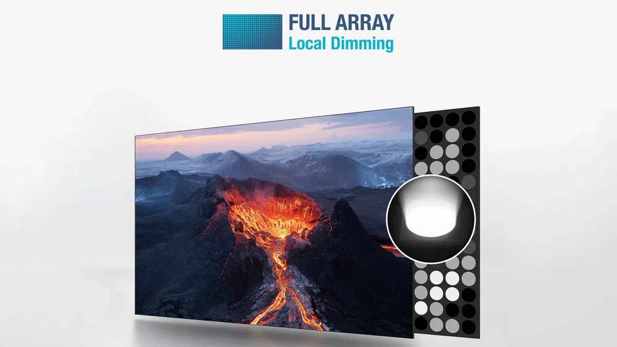 La retroilluminazione LED full array, con un massimo di 220 zone*, consente un controllo preciso della luce, uniforme su tutto lo schermo. Un'illuminazione molto più vivida e precisa rispetto ai tradizionali TV LED edge che utilizzano una sola fila di LED per illuminare il display.La tecnologia TCL Full Array Local Dimming porta la tua esperienza visiva a un livello superiore, offrendoti un contrasto straordinario con colori scuri intensi e colori brillanti e vivaci, massimizzando le luci e le ombre sul tuo televisore. Immagini realistiche con contrasto migliorato, neri più precisi e picchi di luminosità realistici.