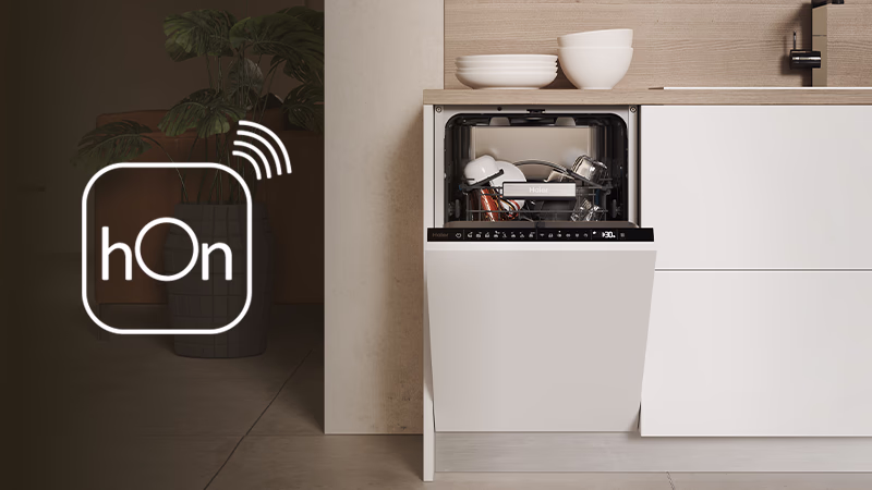 Ogni volta che avete bisogno di controllare a distanza la vostra lavastoviglie o di assistenza immediata, l'app hOn è a vostra disposizione! Vi avviserà quando il ciclo finisce o quando è necessaria una manutenzione. Cicli extra e rapporti sui consumi saranno sempre a vostra disposizione. Lasciate che l'app vi suggerisca il ciclo migliore in base al carico e raggiungete risultati di lavaggio sorprendenti. Accoppiate il vostro smartphone e otterrete utili funzioni e il pieno controllo!