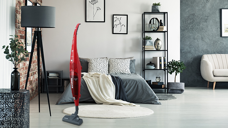 Si tratta di una scopa senza sacco, con un contenitore capiente per la polvere, facile da staccare e svuotare senza nessun contatto con la polvere.