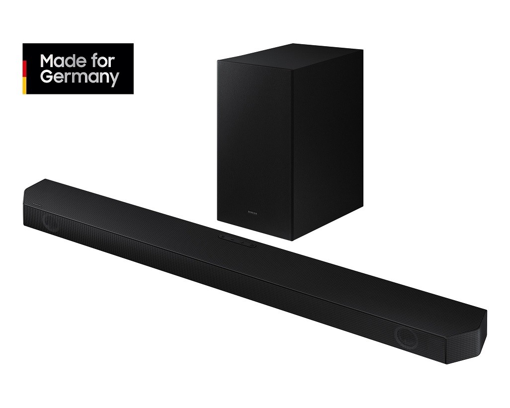 La soundbar si sincronizza con il tuo TV Samsung per dare vita a un’esperienza audio immersiva. Combina e amplifica i suoni attraverso gli altoparlanti frontali e laterali della soundbar e quelli del TV, regalandoti un nuovo livello di immersione acustica, per godere dei contenuti in modo mai sperimentato prima.
