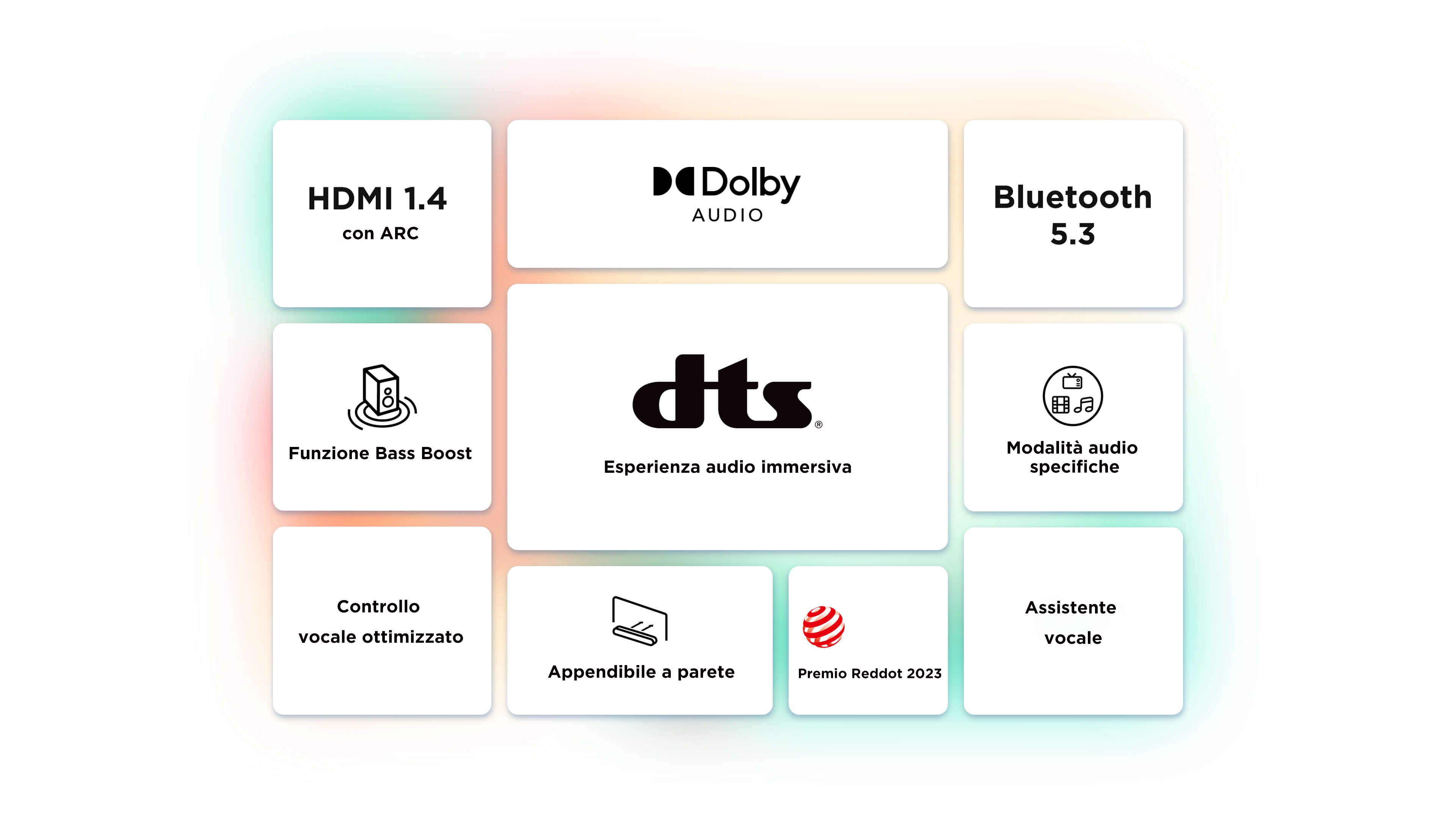 Grazie alle diverse modalità audio potrai sempre vivere la migliore esperienza di ascolto, che tu stia guardando la TV, un film o ascoltando le tue canzoni preferite.