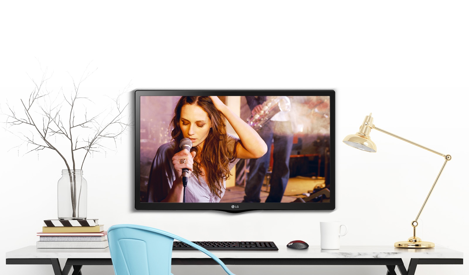 È possibile montarlo su una parete o impostarlo sulla scrivania per guardare programmi TV o altro.